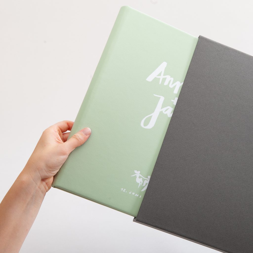 Früher hießen Bücher, in die Gäste etwas schrieben immer nur „Gästebuch“. So verstaubt muss es nicht sein. Nennen Sie es „Hausbuch“ und dokumentieren darin alles Wichtige, das in Ihrem Haus geschieht. Nennen Sie es „Lieblingsgäste“ und verewigen Sie darin die besten Partys. Lassen Sie auf den Deckel Ihren Namen, die GPS-Koordinaten, Ihr Wappen oder Logo oder was immer Ihnen wichtig ist prägen.
